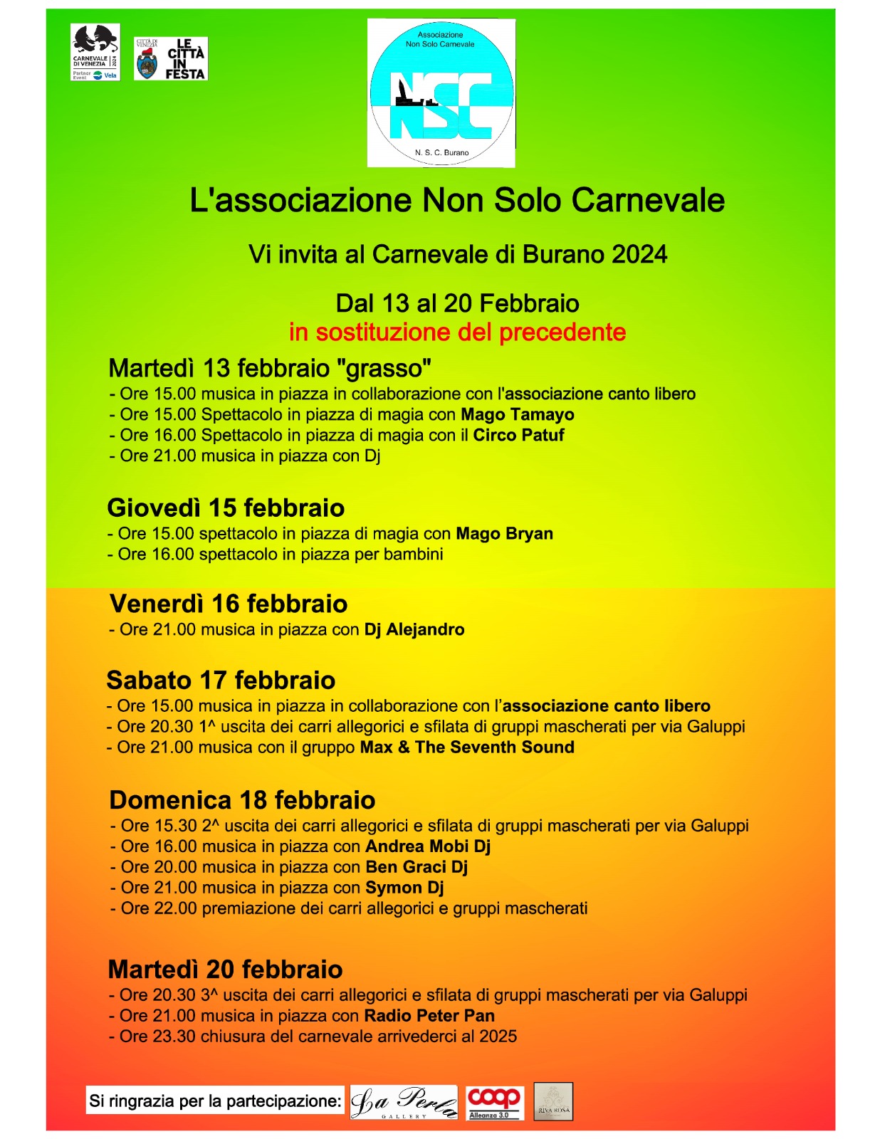 Carnevale di BURANO cambio programma causa maltempo