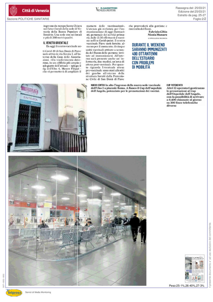Gazzettino: Pellestrina si vaccina