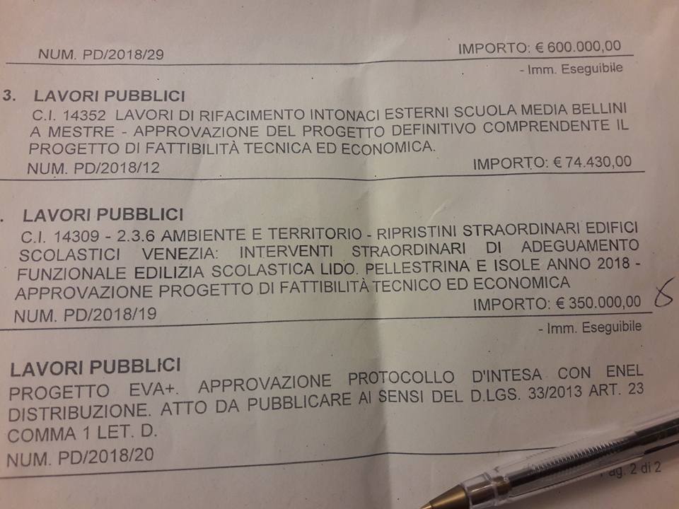 A seguito di molteplici solleciti ricevuti dalla cittadinanza residente, commenta il Consigliere Scarpa, e considerando che la scuola è un edificio del 1930, abbiamo raggiunto un buon traguardo, utilizzando i fondi del Comune di Venezia e Regione Veneto.