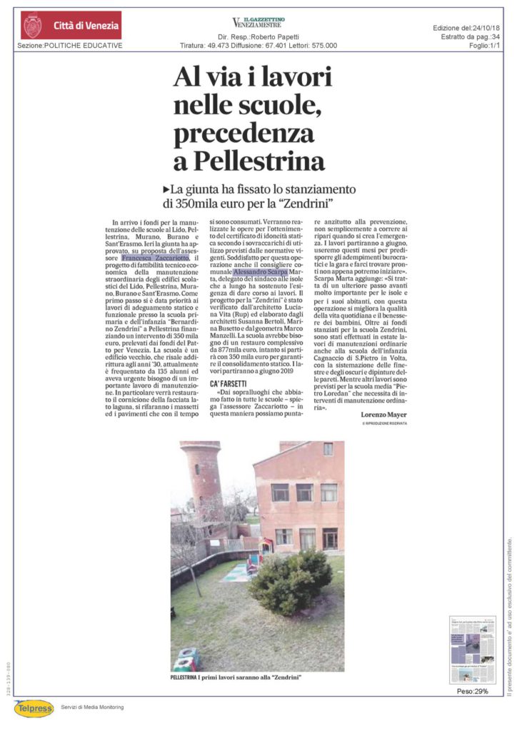 Scuola Zendrini di Pellestrina: al via i lavori, cantiere in estate